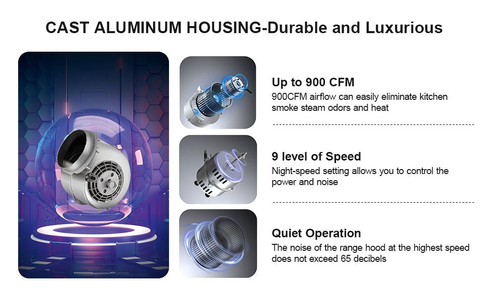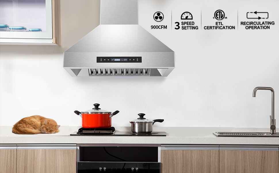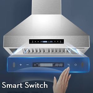 Vent Hood features a easy clean and sleek buttonless smart switch control panel, just wave or lightly touch with your finger and the display will light up.