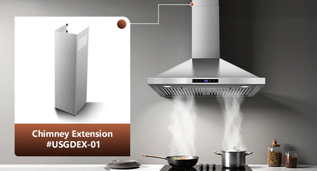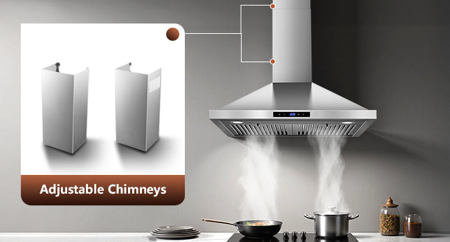 Kitchen exhaust fan comes with adjustable chimney, can be installed 7.5 to 9 ft ceiling height.