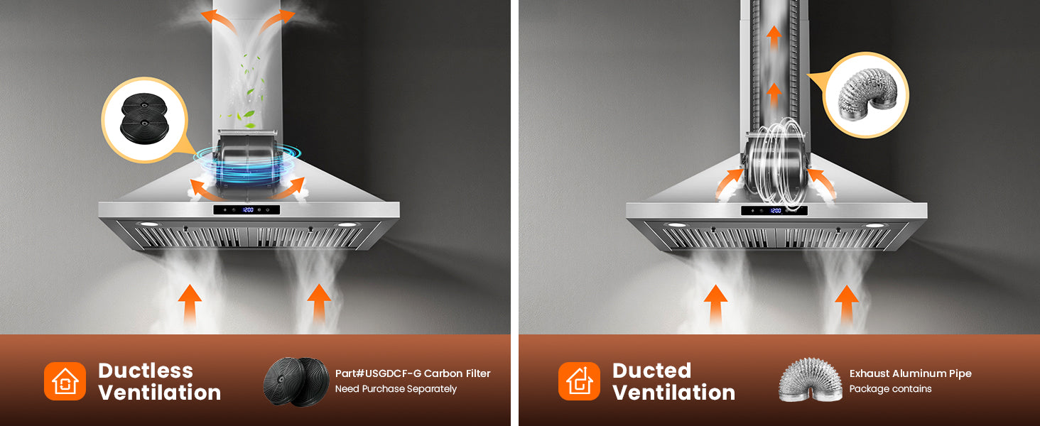 USGD1075 - 30 Inch - 700 CFM - Wall Mount Range Hood with Ducted/Ductless, Touch Control, Stainless Steel
