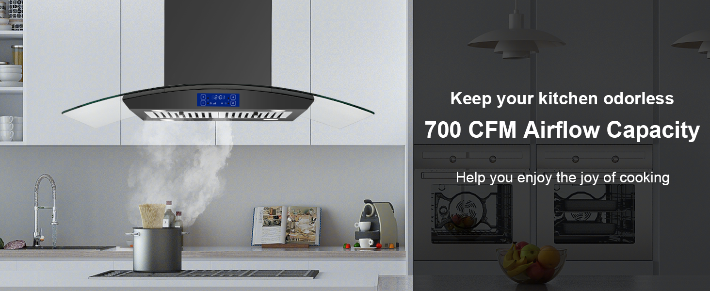 The high airflow of 700cfm quickly extracts grease and smoke, keeping your kitchen clean and odorless. Preset 5-minute timer to effectively remove residual cooking fumes