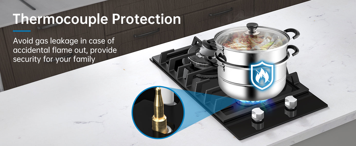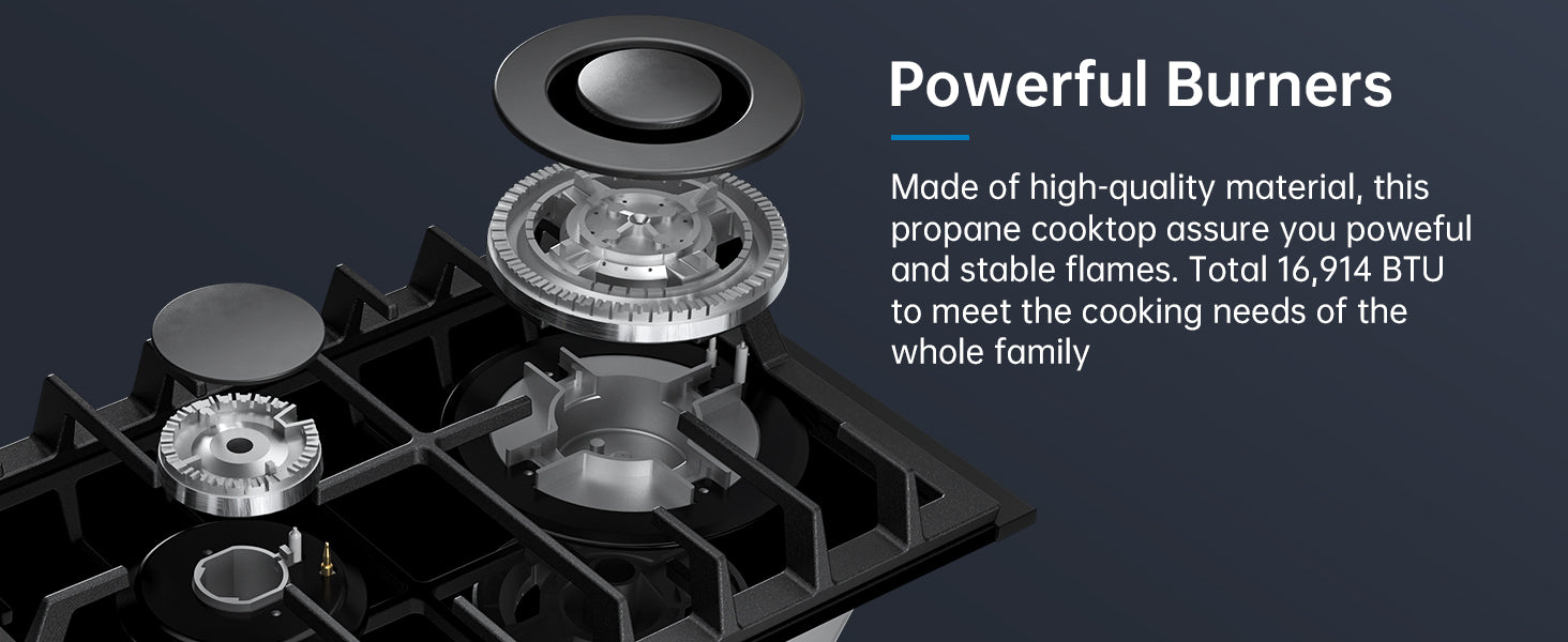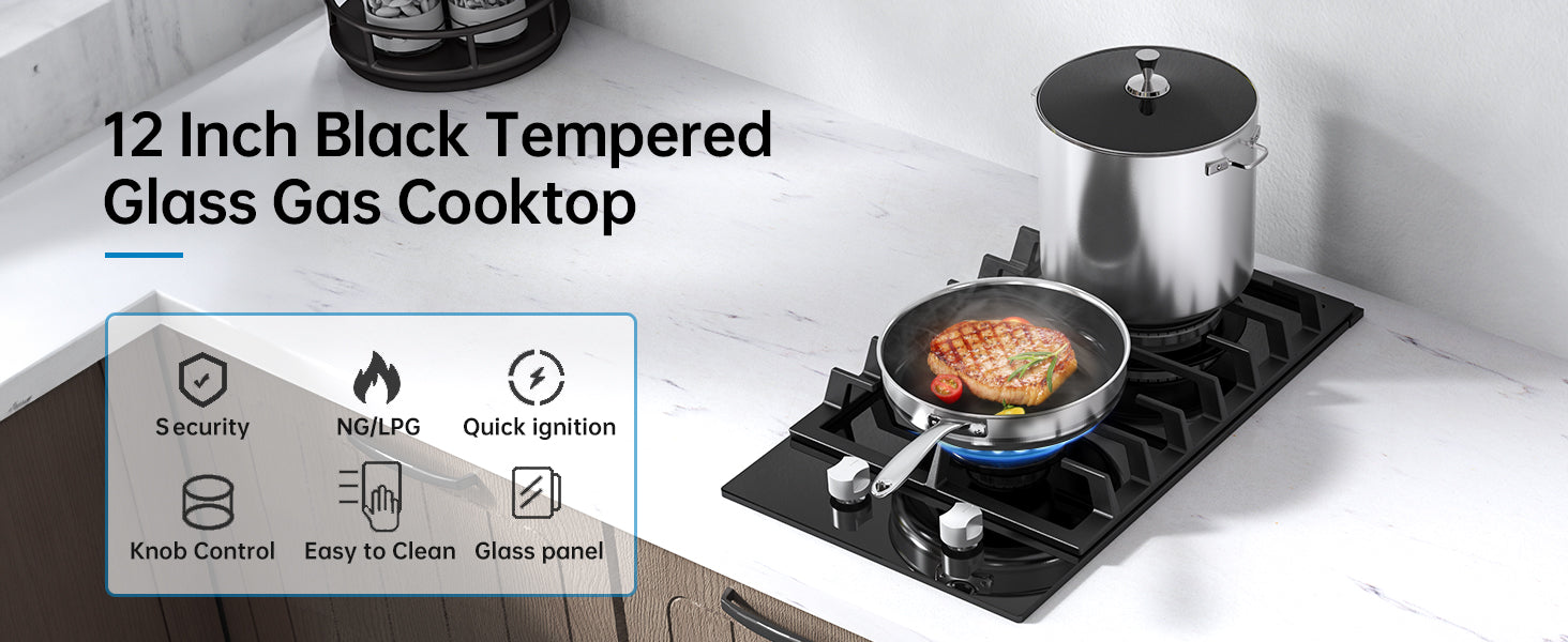 - Easy Maintenance:12" propane cooktop Built with black tempered glass surface
