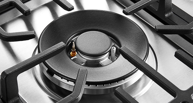 Grills are heavy-duty and continuous across the top of the cooktop, making it easy to move pots and pans around with no snags. Italy SABAF burners comes with full combustion and stable flame.