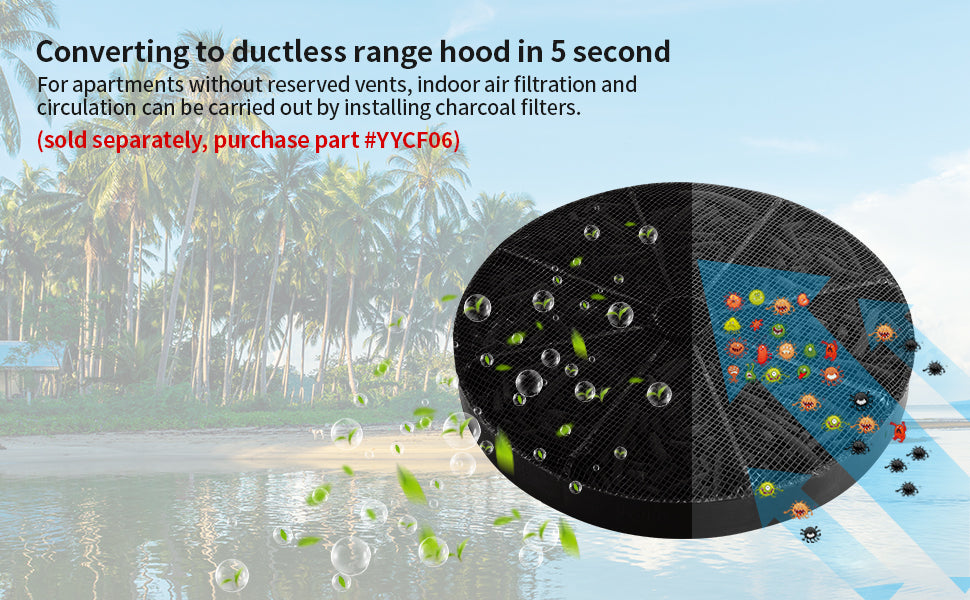 【Convertible Venting Option】This is a perfect range hood insert for any kitchen with no venting system. Easily convert this range hood for your kitchen with a pair of highly concentrated charcoal filters (not include,sold separately).