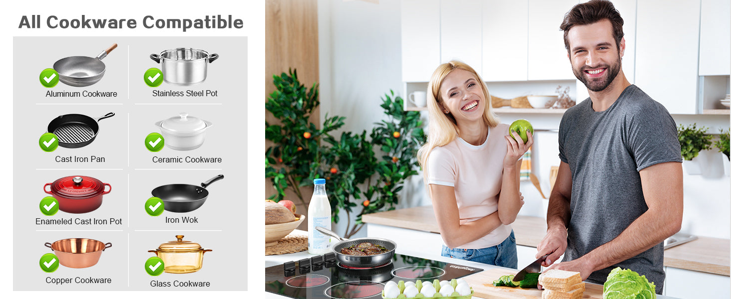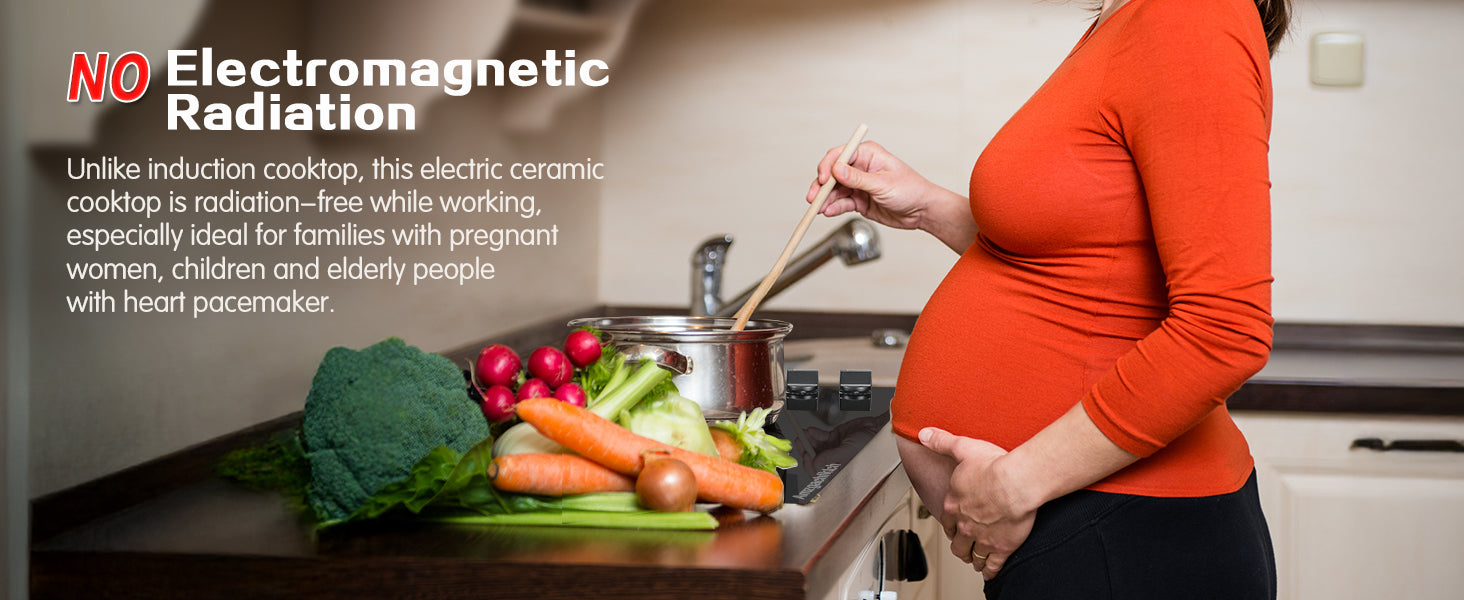 - 【Compatible with All Cookware】Electric ceramic hob are more convenient to use than induction cookers. You can use all cookware types including aluminum, copper, cast iron, and non-magnetic stainless steel pans.