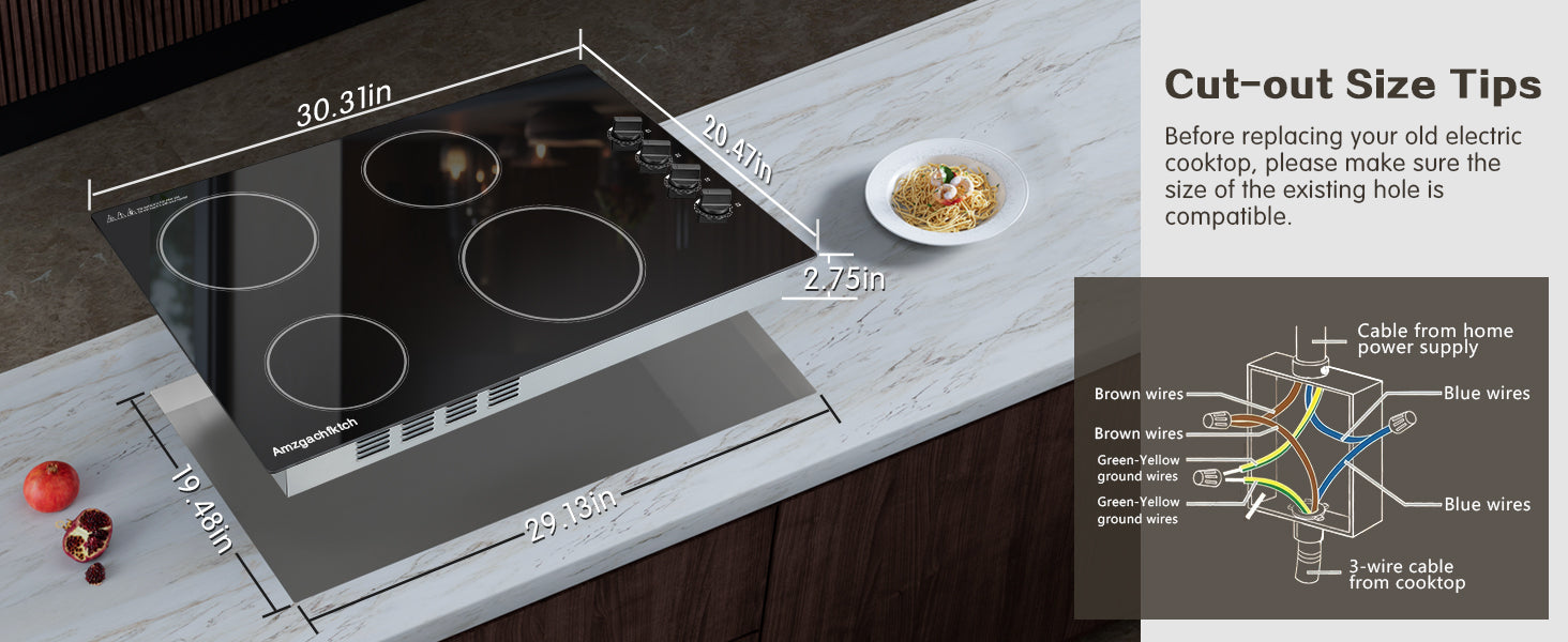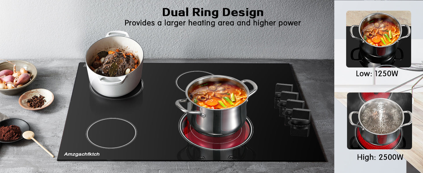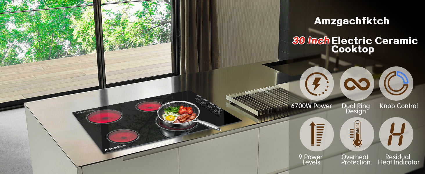 - 【Safe & Convenience 30 Inch Ceramic Cooktop】Experience ultimate safety with our 30" electric stovetop, featuring hot surface indicators, over-temperature protection, and auto shut-off functions.