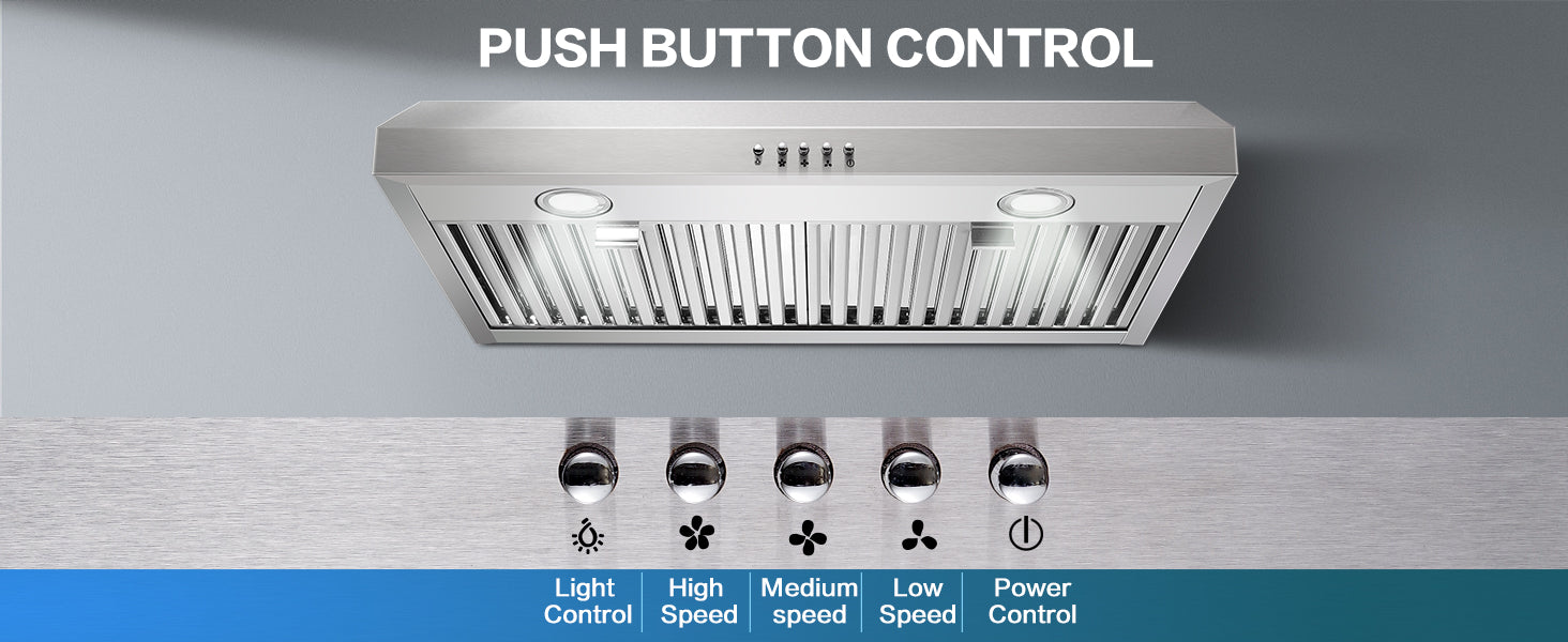 Easy to operate PUSH BUTTION SWITCH, allow you to easily switch between various functions of vent hood during cooking.