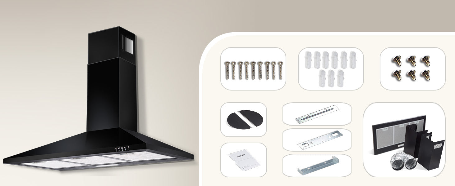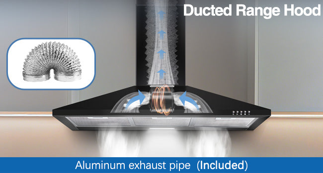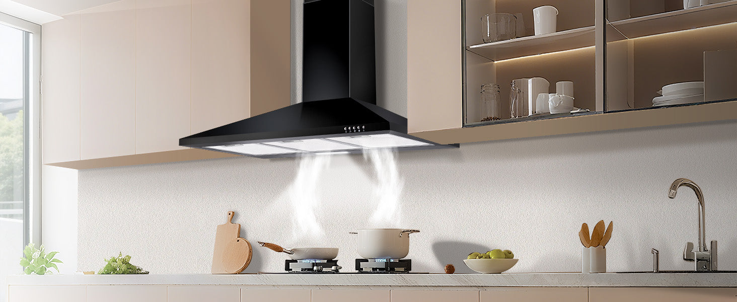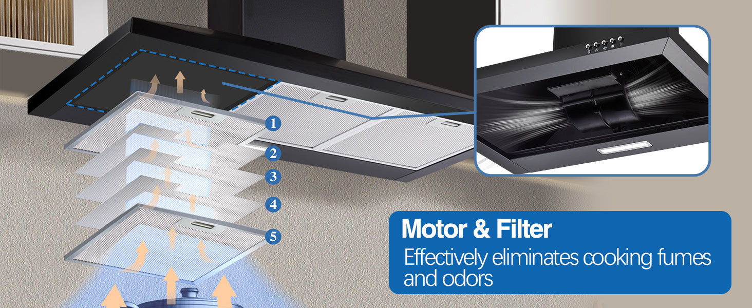 The 36 inch range hood is equipped with a 5-layer aluminum mesh filter that effectively intercepts and captures cooking fumes.