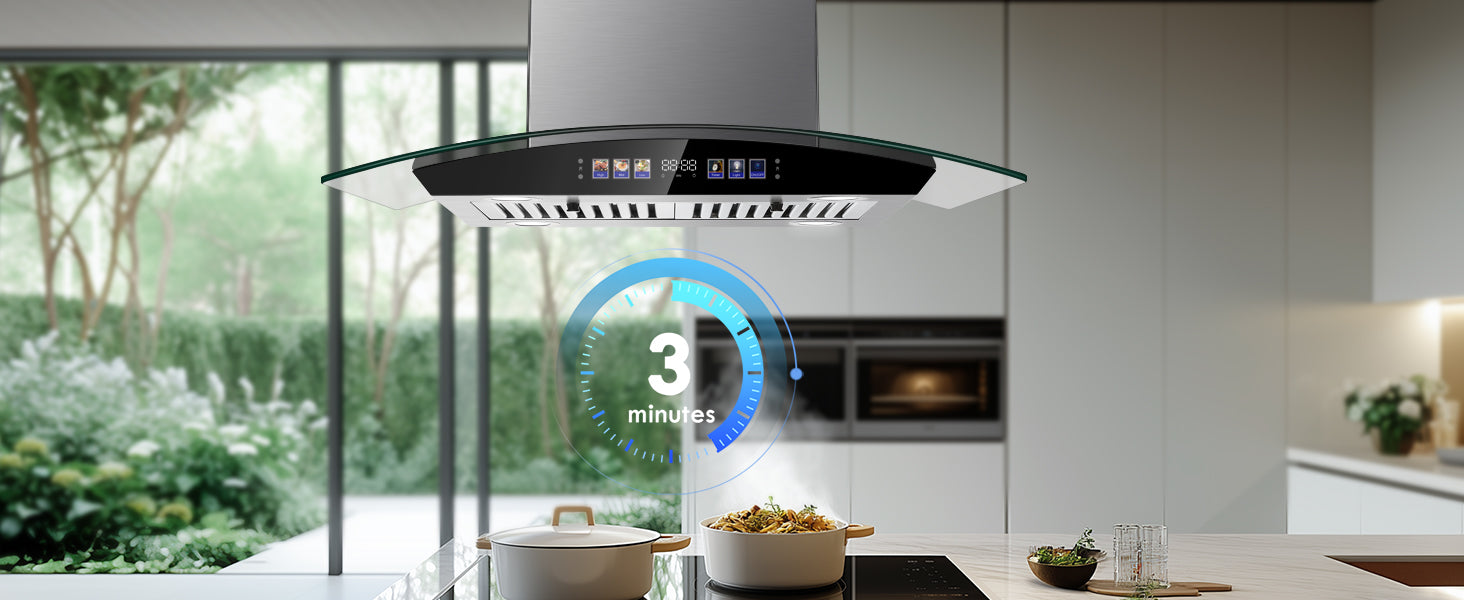 - Brilliant Lighting & Smart Ventilation: This Kitchen Hood features 4 ultra-bright LED lights that deliver perfect task lighting for all your cooking needs while being energy-efficient. The smart delay function automatically continues ventilation after cooking to thoroughly clear residual smoke and odors, combining powerful performance with energy savings for a cleaner, brighter kitchen