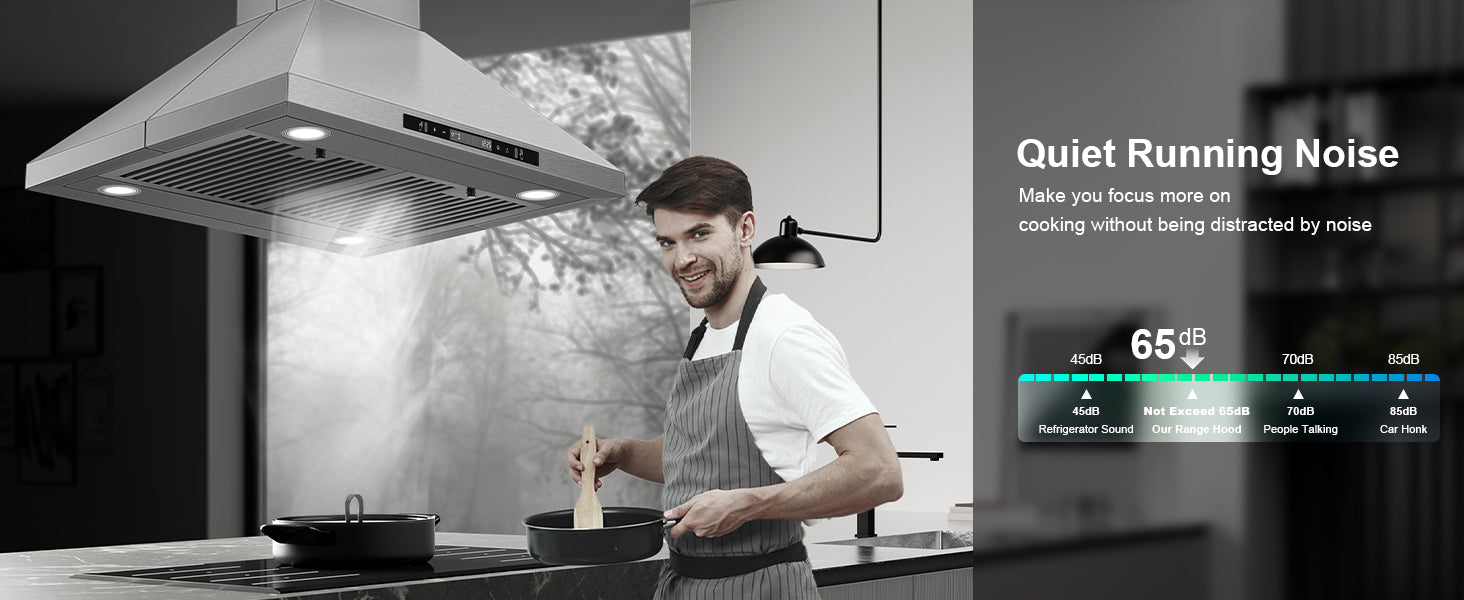 【700CFM Powerful & Quiet】Island range hood delivers ultra-strong 700 CFM suction with noise as low as 65 dB, instantly clearing smoke and odors while maintaining peaceful kitchen environment.