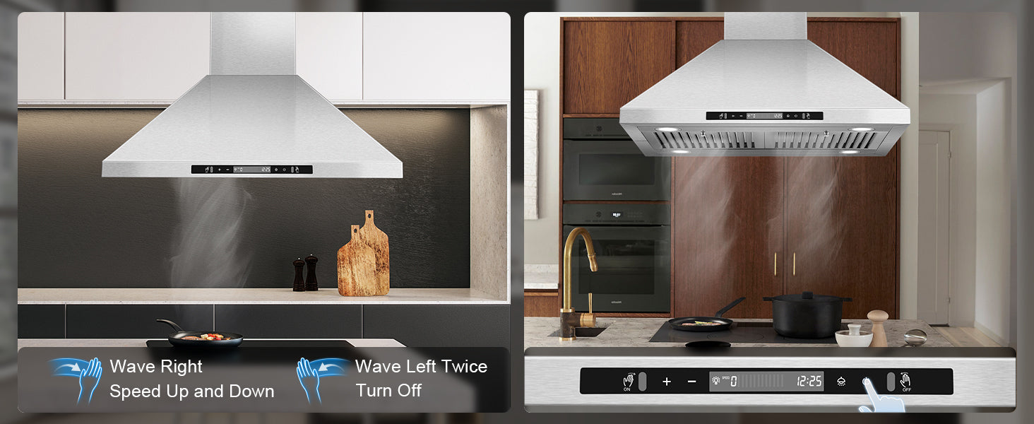 【Smart Lighting & Ventilation】Features 4 ultra-bright LED lights and smart delay function that continues ventilation after cooking to eliminate residual smoke and odors.