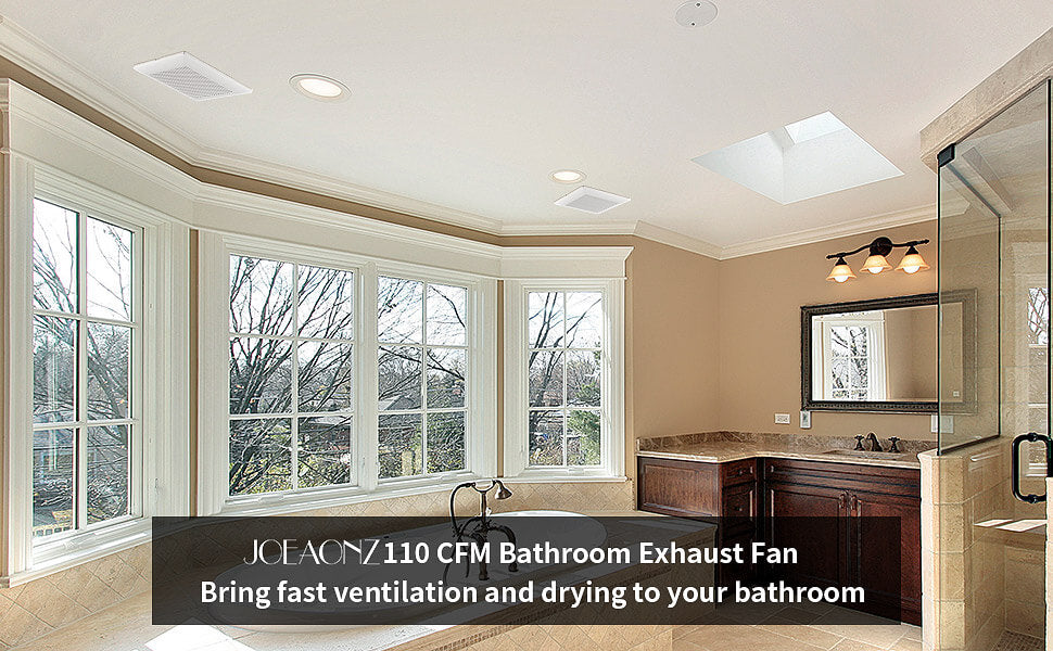 The JOEAONZ bathroom exhaust fan provides 110 CFM large air-flow capacity, which can fast drying of 10m²/107ft² of bathroom.
