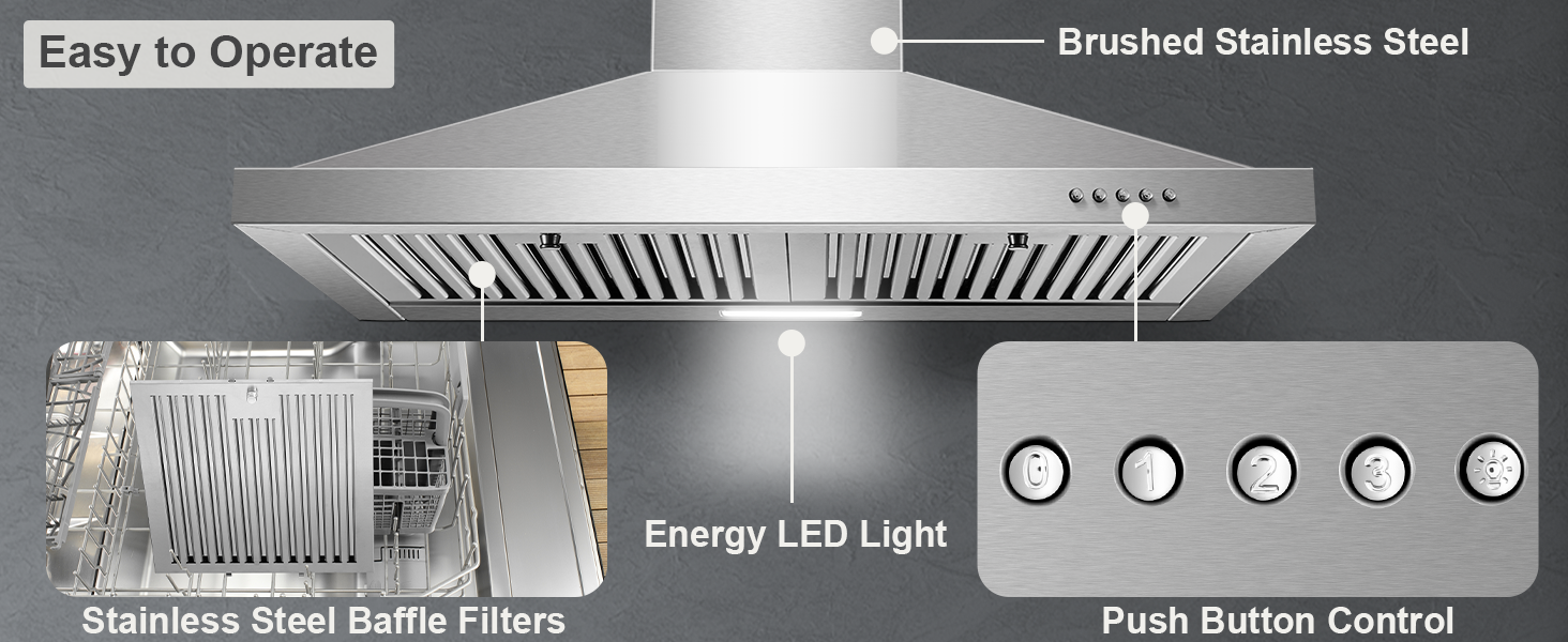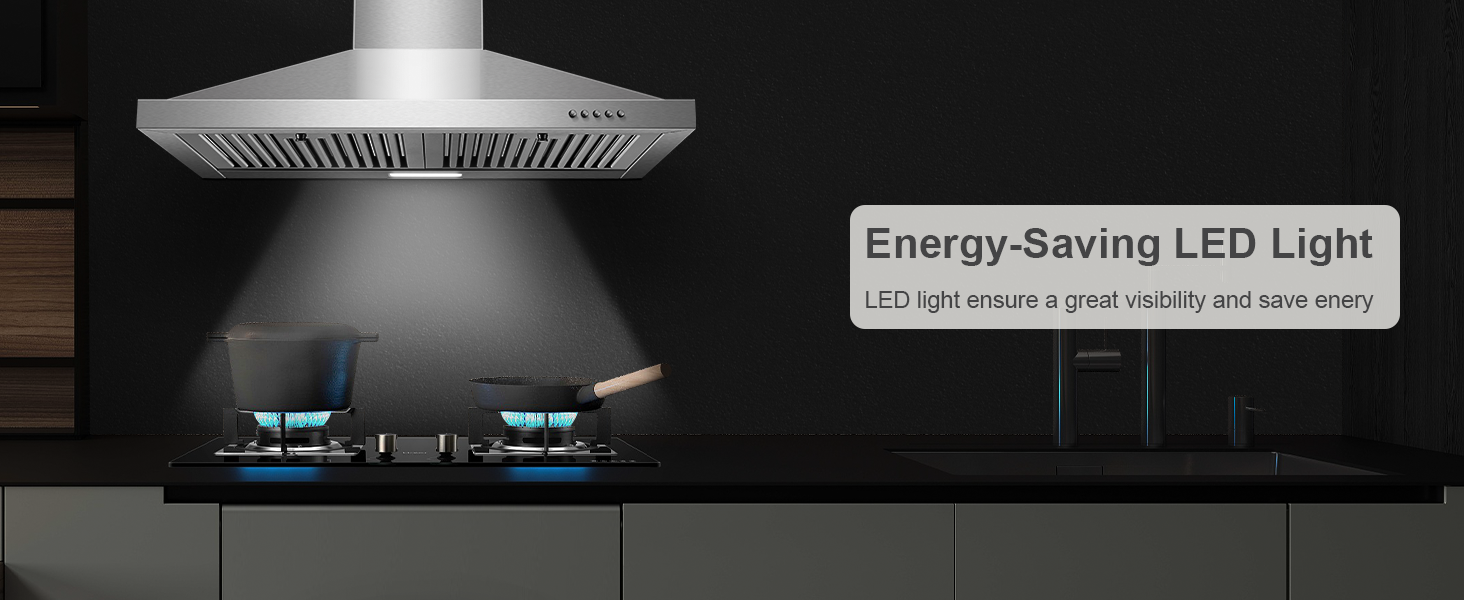 - 【User-Friendly Design】Dishwasher-safe stainless steel baffle filters. Energy-saving LED lights illuminate the entire cooking area.