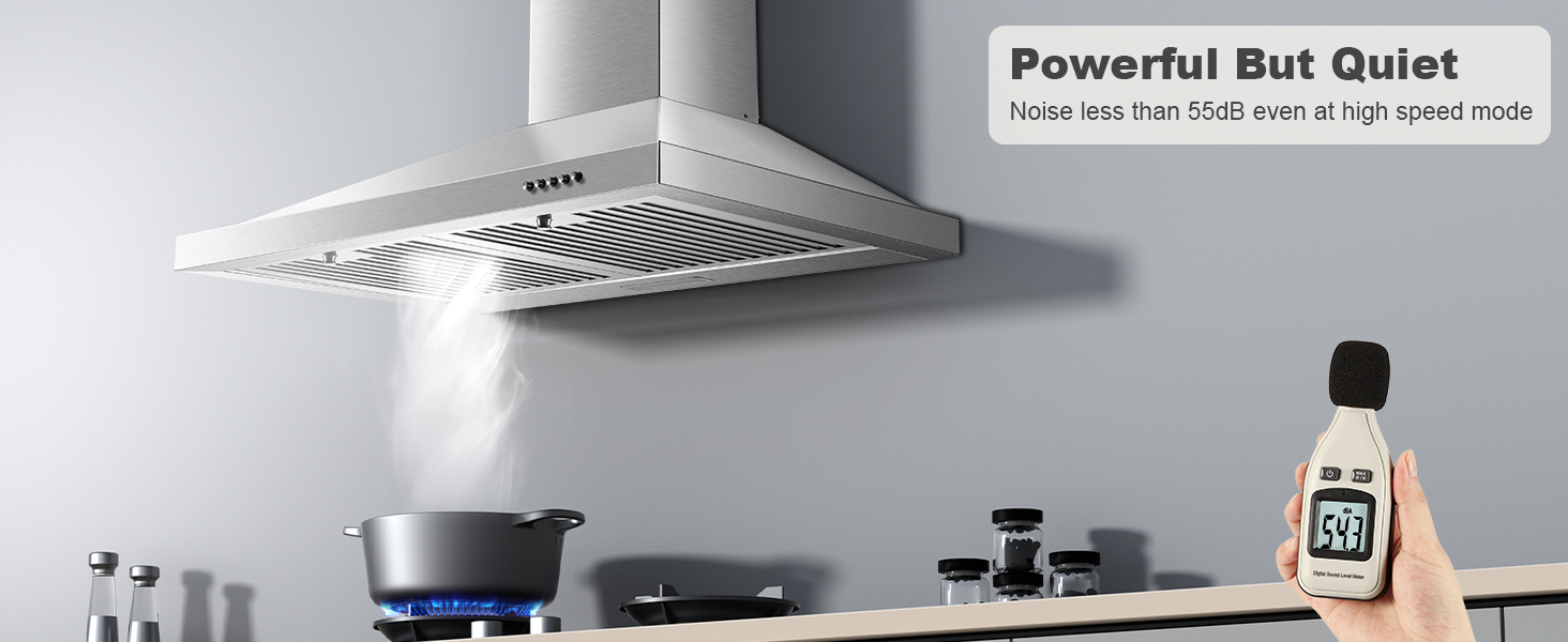 - 【Powerful Yet Quiet】450 CFM strong suction clears smoke efficiently. 3-speed settings with max noise ≤55 dB for quiet operation.